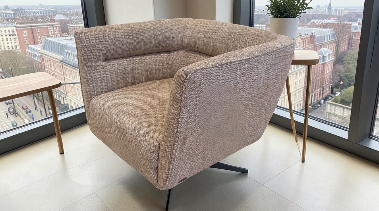 As an ex Natuzzi store display, this chair represents a one off opportunity. Pieces like this are ideal for design conscious buyers who want authentic branded furniture, a more individual fabric choice, and a reduced sale price compared with ordering new through the standard route.