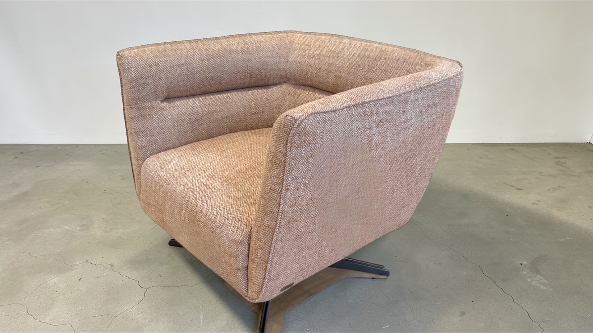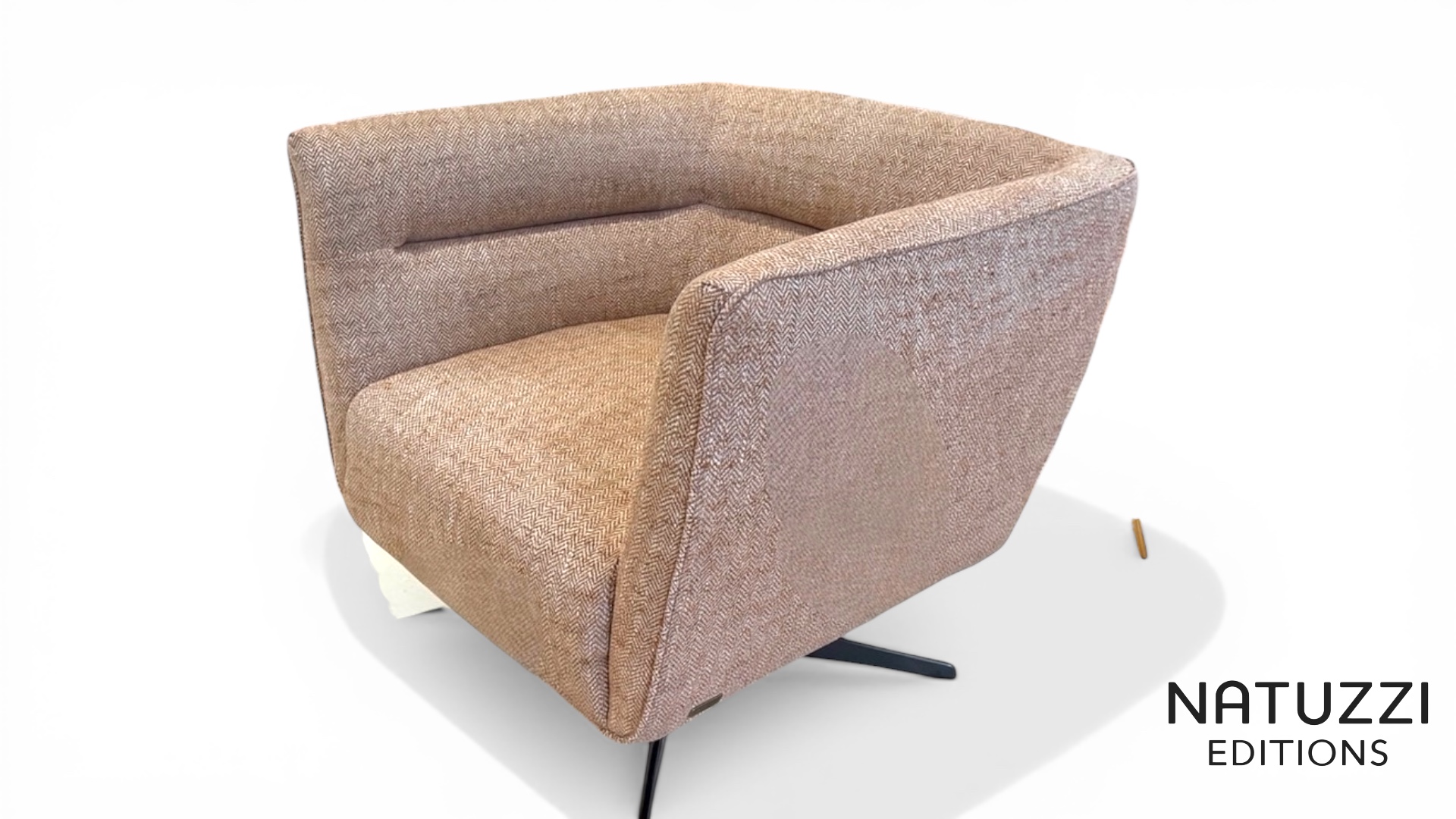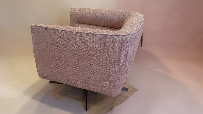 Bring a softer designer look into your room with this striking Natuzzi Editions Damen C219 accent chair, finished in a pale pink and off white herringbone fabric that feels warm, modern and distinctive. This ex Natuzzi store display offers the chance to own a genuine Natuzzi Editions statement chair at a reduced sale price, making it a strong choice for anyone who wants premium design without paying full retail.