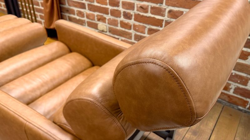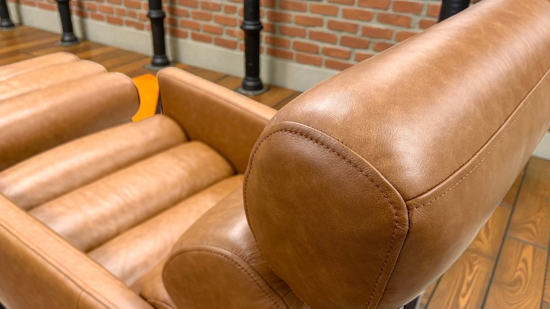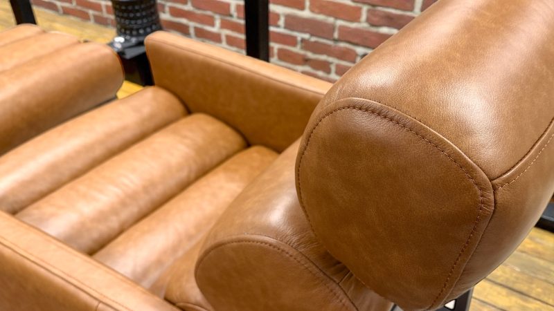 The Revolution Chair and matching footstool is a bold designer statement with serious comfort built in. Upholstered in premium antique look protected leather, it delivers that classic tan leather character while staying practical for everyday living. The contrasting grey wood frame adds an urban industrial edge that works beautifully in modern homes, loft style interiors, and any space that needs a standout feature chair.