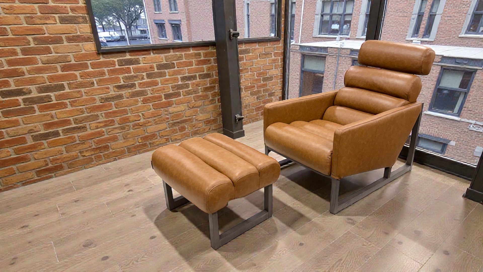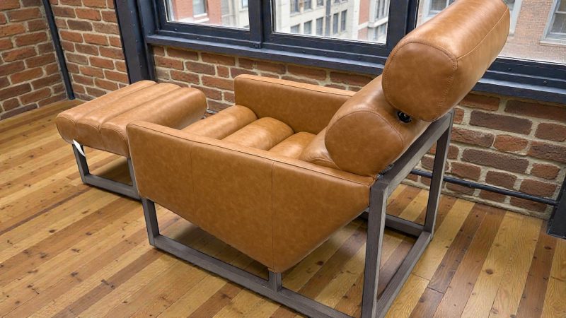 sofas, designer sofas, leather sofas, reclining sofas, Sofa Max, Revolution chair, designer chair, leather accent chair, antique look leather, protected leather, tan leather chair, urban industrial furniture, industrial style chair, grey wood frame chair, hammock cushion chair, adjustable headrest chair, footstool included, modern lounge chair, reading chair, statement chair.