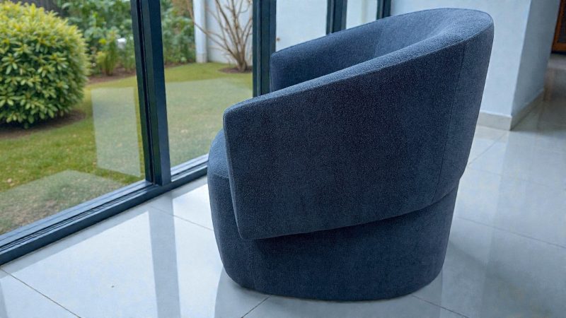This pair of Venus swivel feature chairs in premium blue fabric is an easy way to add a designer focal point to your living space. The rounded silhouette and wraparound backrest create a relaxed, supportive feel, while the smooth swivel action makes them perfect for open plan living, entertaining, or simply turning towards the conversation.