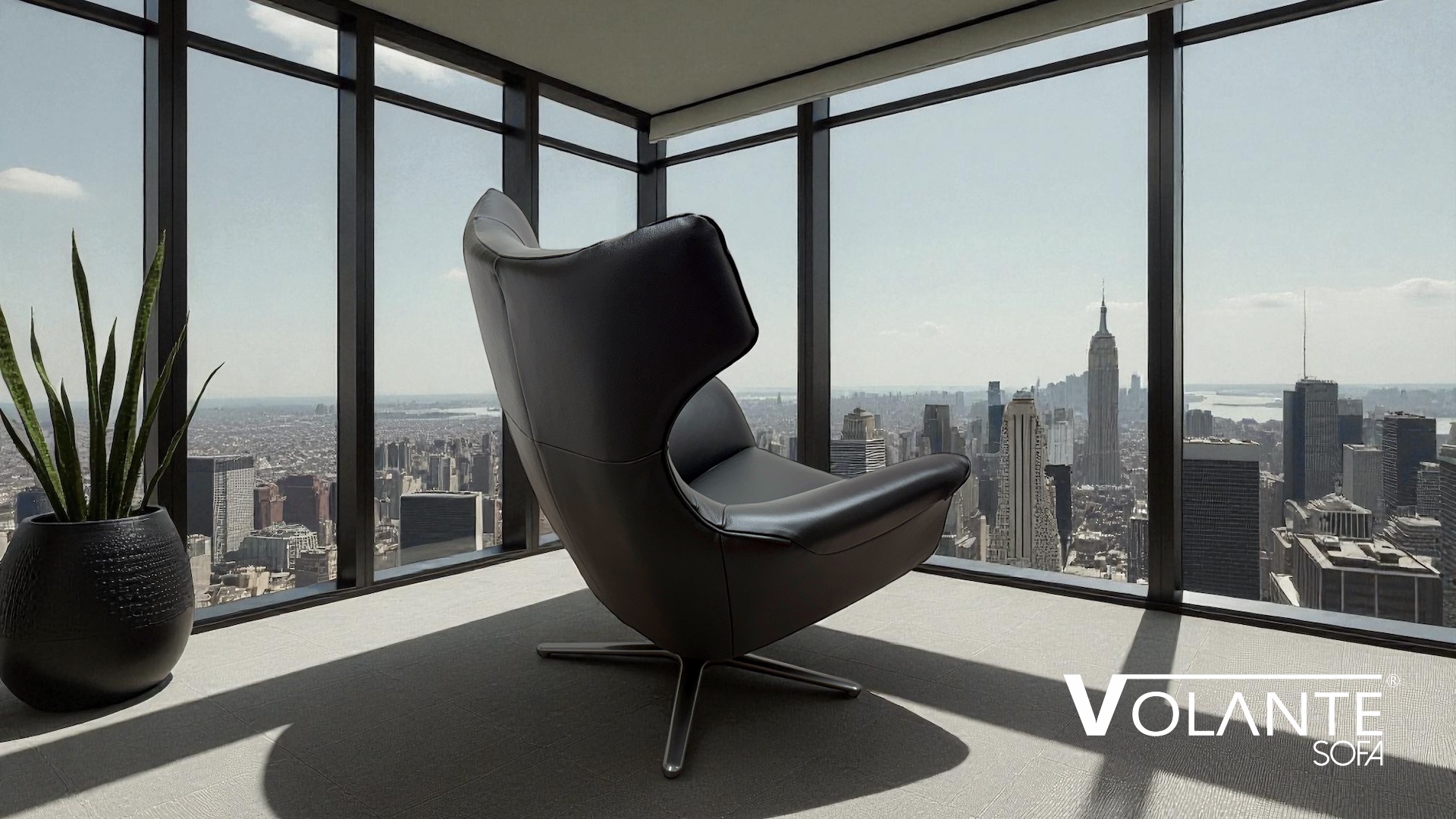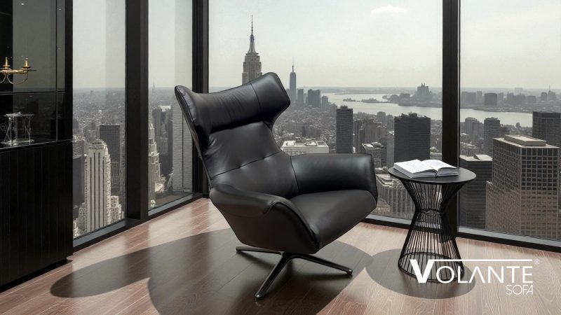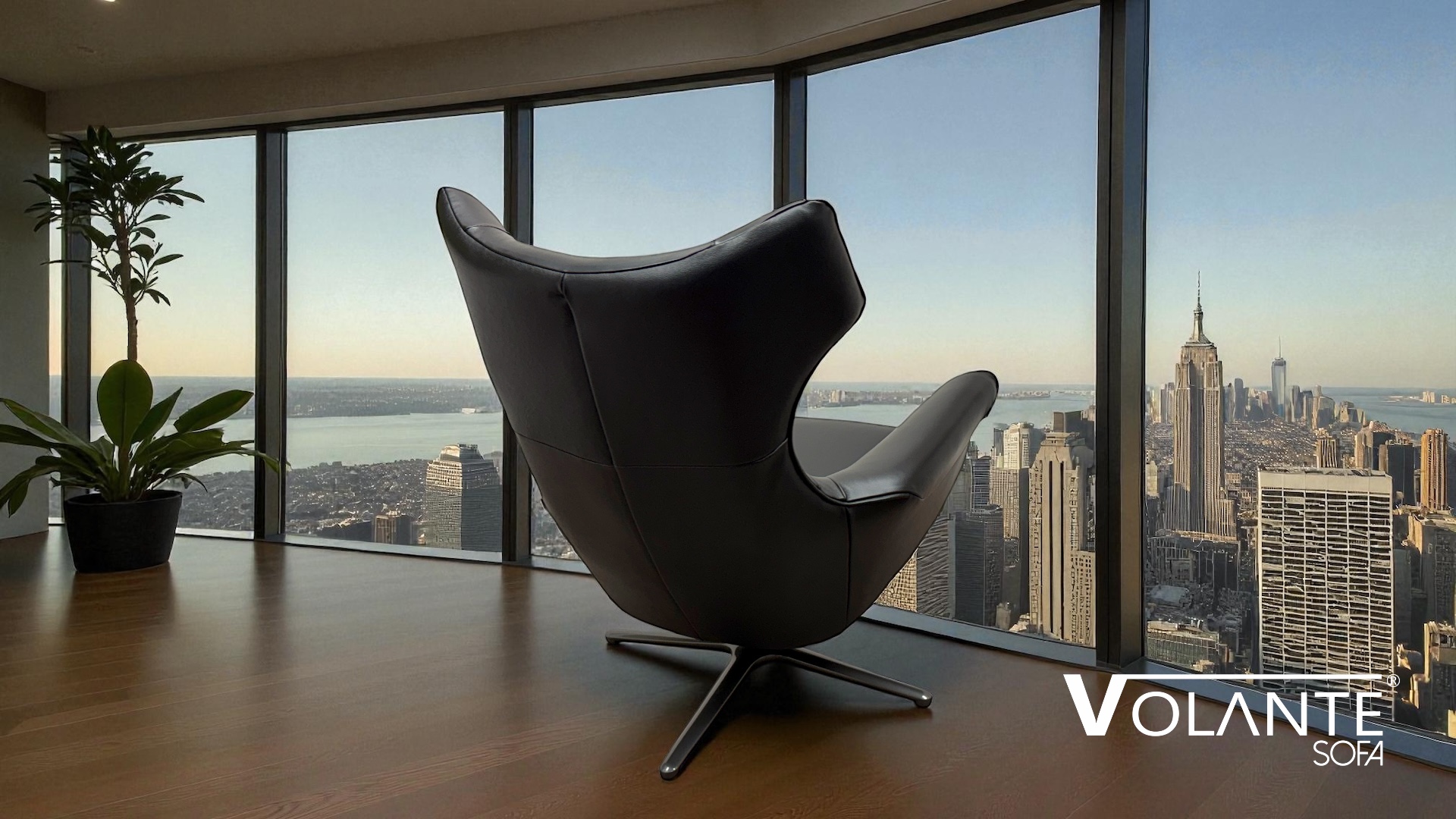 - The Volante feature chair brings a smart, modern look to any room, and the black leather version adds an extra touch of luxury. It is a comfortable, well-made swivel chair with a strong presence, perfect as a standalone statement piece or as part of a contemporary living space.