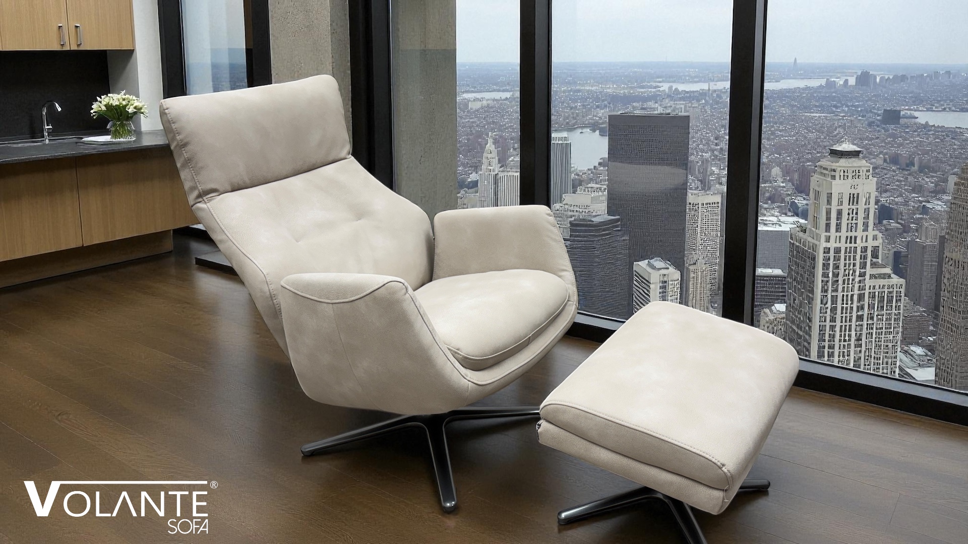 Volante Vista swivel recliner chair with footstool
