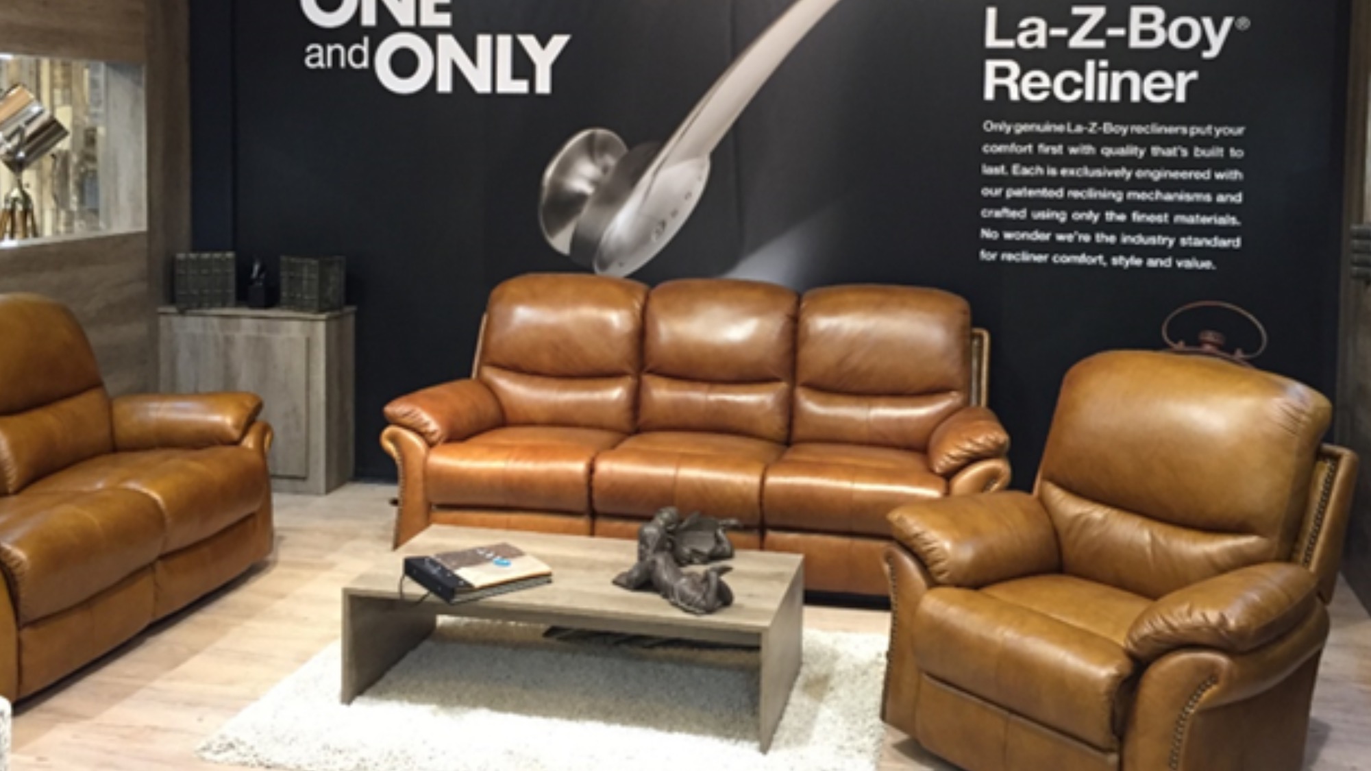 La-Z-Boy Furniture Gallery concept will be launching august/September 2017, with retailers stocking at least 20 seats of the new Originals Collection. Re-introduced to the collection the patented La-Z-Boy handle recline mechanism. Lazy boy Gallery point of sale material will include a four-sided totem featuring hanging leather swatches and a screen with brand video, freestanding screens and wall graphics.