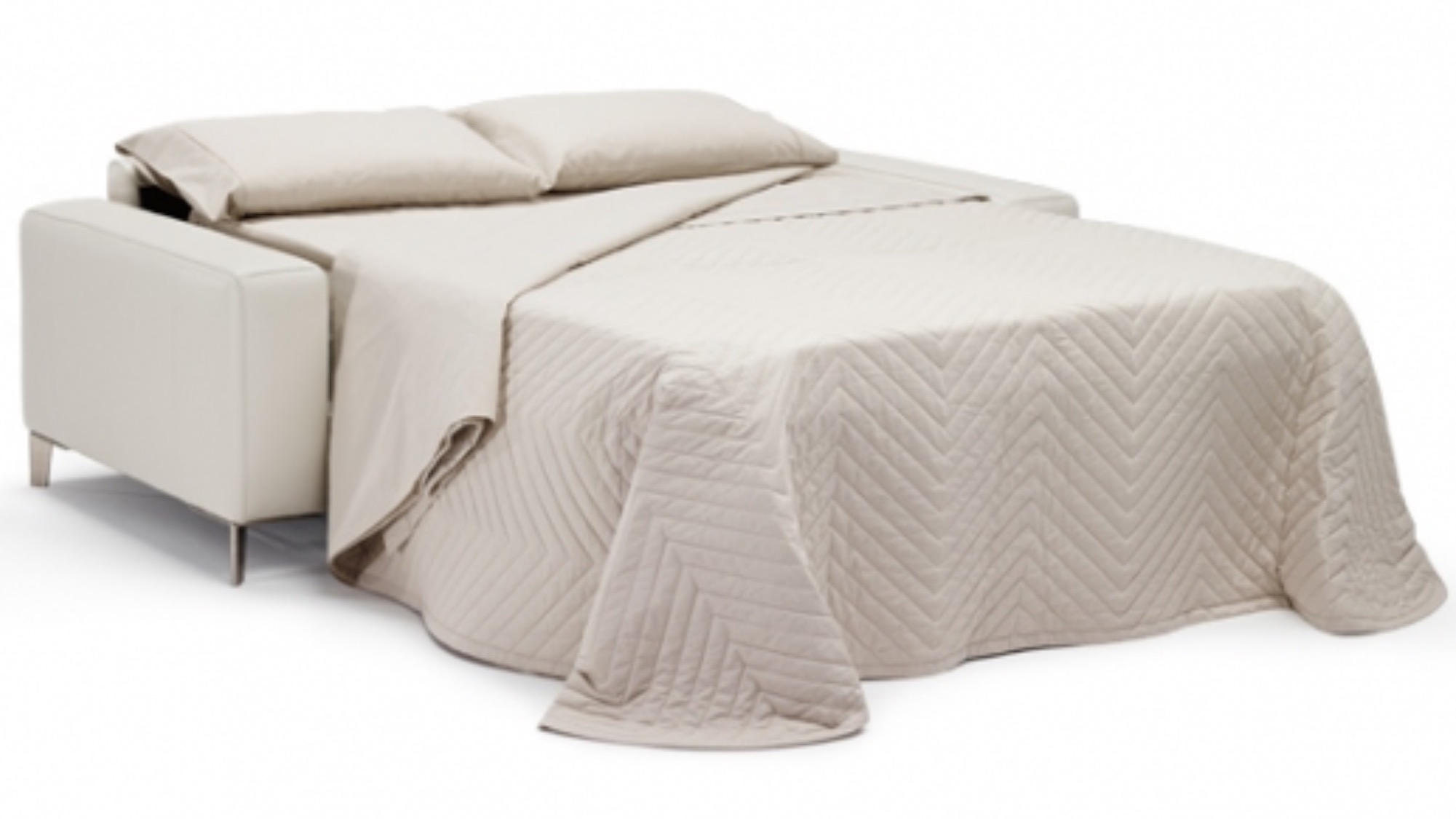 The Natuzzi Valerio B883 really does combine function and form, as is available in a roll out sofa bed that transforms into a full-size bed within five seconds. Pulling the back cushions forward it rolls over and a bed appears up with a thick and Italian memory and reflex foam combination mattress all on a web sprung on metal base.