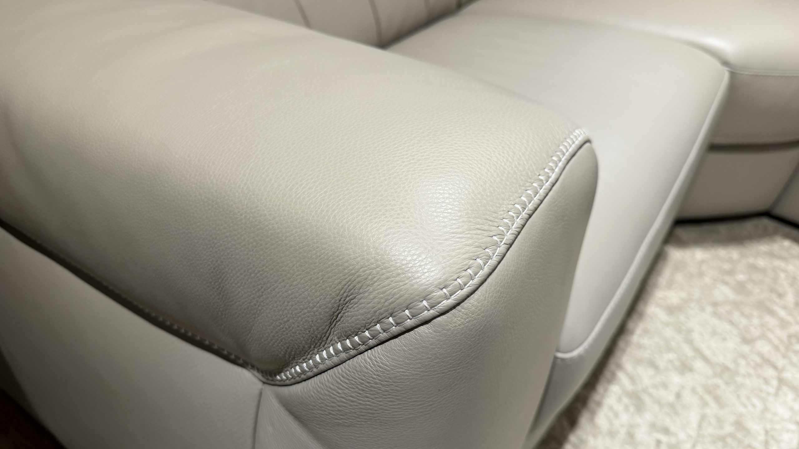The decorative moccasin stitching is one of the easiest ways to identify Forza. It is a contrast stitch effect that frames the arm and gives the sofa a more crafted, premium look, especially in lighter leathers. Not every cover option supports contrast stitching, so if you are set on that look, confirm it at order stage, or if you are buying display stock, check the arm fronts and side panels in person.