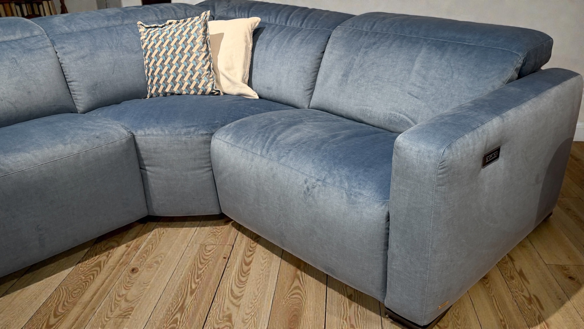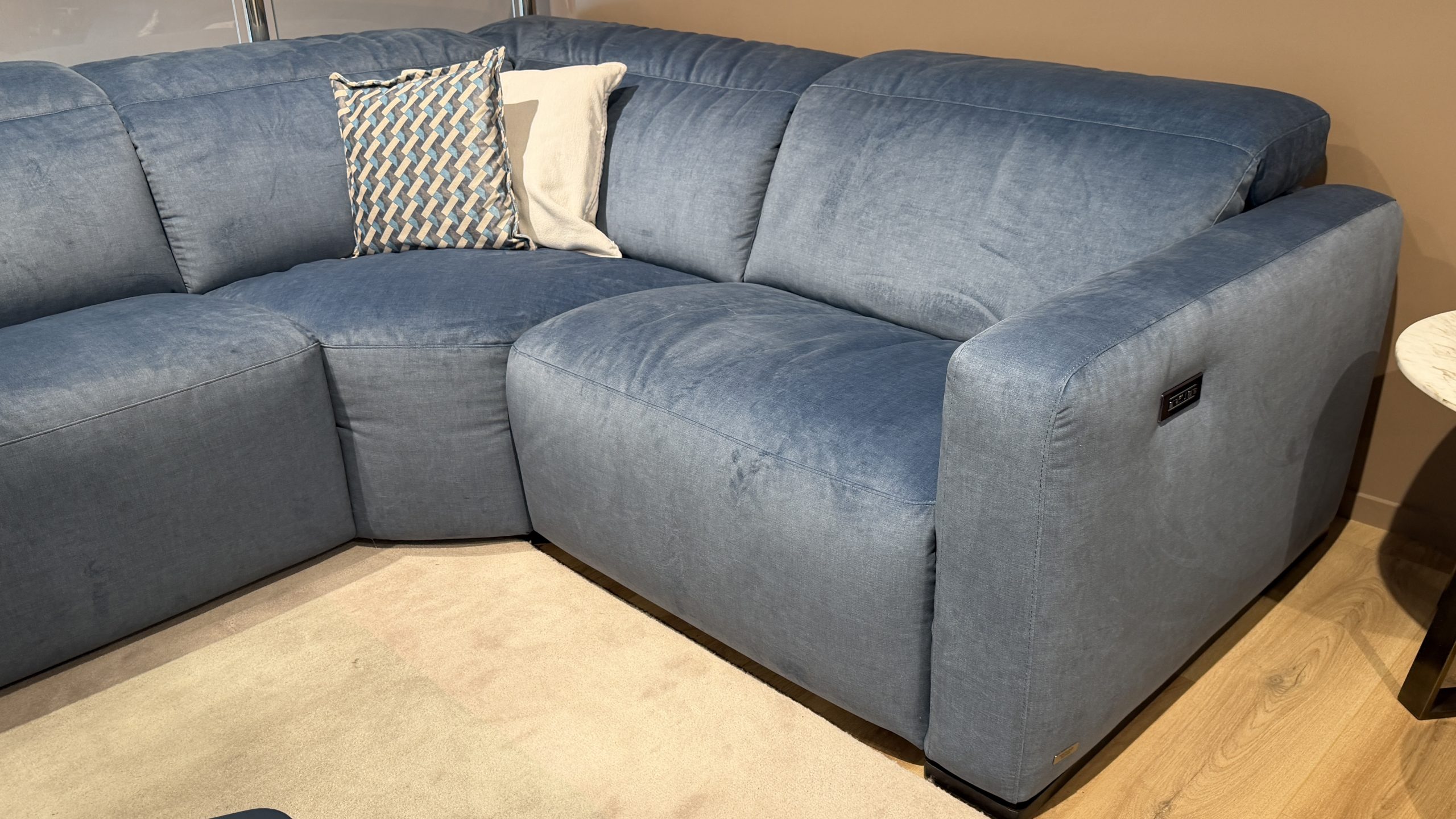 As an ex store display sofa, it may show light cosmetic signs from being on a showroom floor. We price these pieces to reflect the clearance value, and they are ideal if you want a higher end Natuzzi model for less, with availability right now rather than a long order lead time.