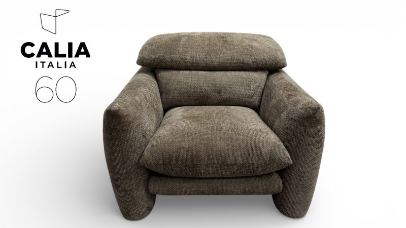 Choco Magic is the restyling of Calia Italia’s iconic Magic model, originally designed in 1984 by founder Liborio Vincenzo Calia and reimagined for the brand’s 60th anniversary by architect Saverio Calia. The design keeps the distinctive seventies inspired character, updated with modern proportions and a grounded presence, including an elegant arm that extends down to the floor.