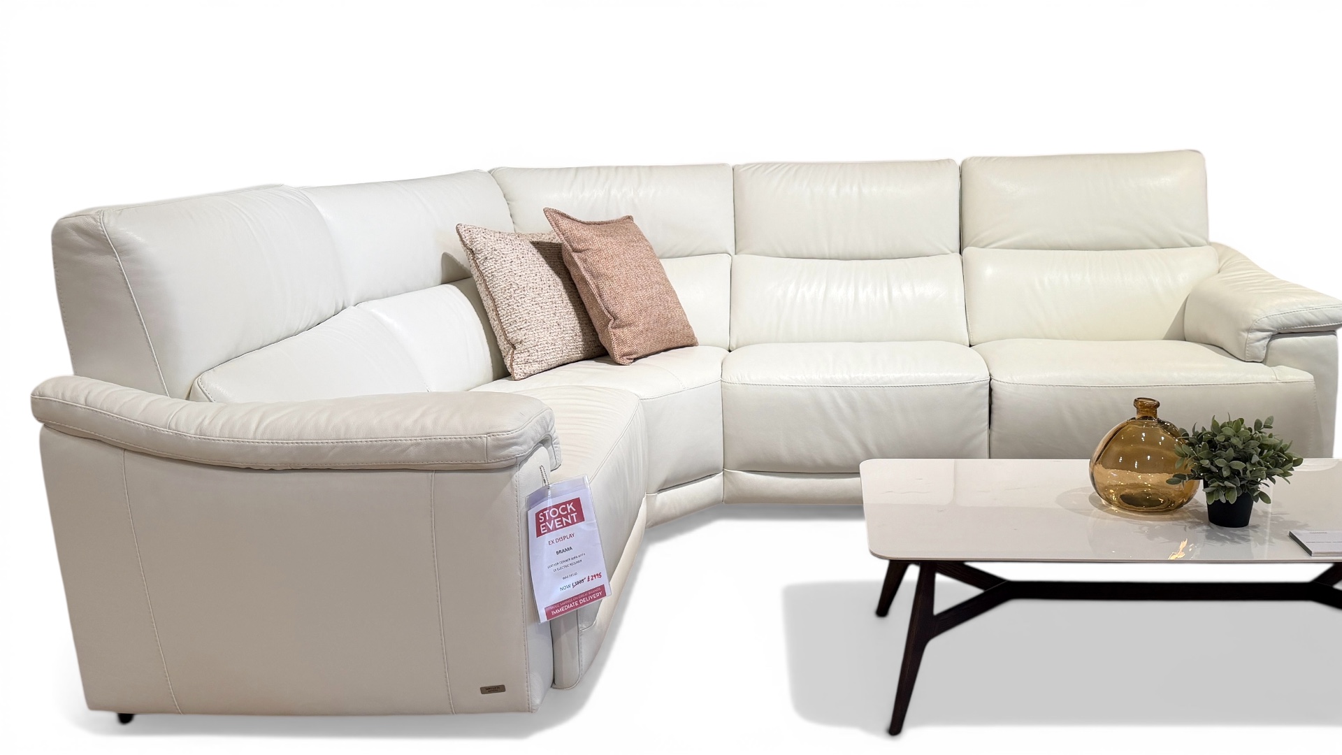 This SofaMax display model is finished in elegant off white Le Mans premium protected leather and is in great condition, making it a rare one off chance to buy a genuine Natuzzi Editions designer corner at a very low outlet price. If you want the look of a bright contemporary leather corner without giving up real everyday comfort, this is exactly the sort of clearance find worth moving quickly for.