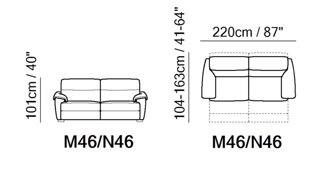 3 Seater 220x104cm 2 Seater 178x104cm Height 101cm