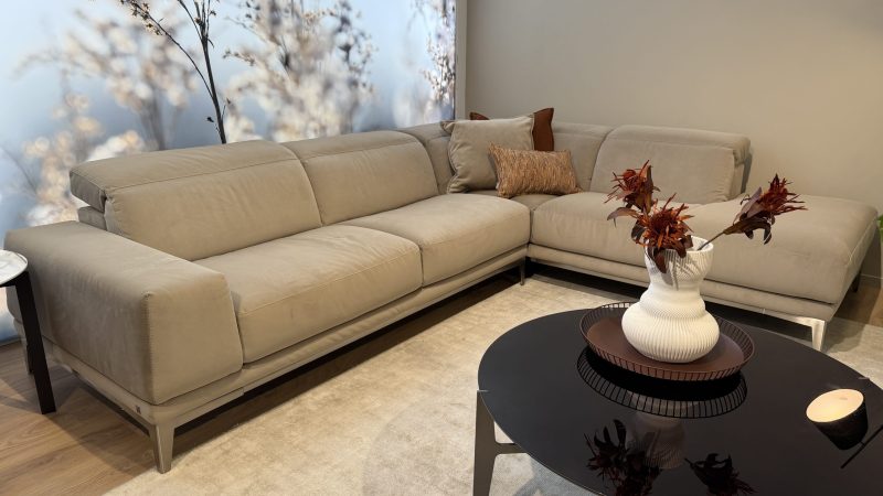 Comfort is where Borghese really earns its reputation. Each seat includes adjustable headrests, so you can keep the back low and minimal for everyday living, then raise support when you want to relax, read, or watch a film. The seat cushioning combines polyurethane with a memory foam layer for that supportive feel that still stays inviting, and the open base can be specified in wood or metal depending on the look you want. It is a premium corner sofa that balances design and everyday practicality, without feeling bulky or over styled.