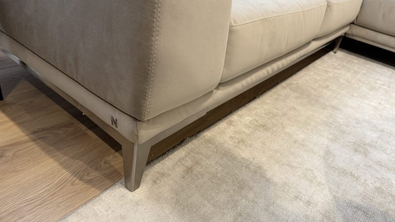 Borghese is one of those Natuzzi Italia designs that looks calm and architectural, but feels seriously comfortable the moment you sit down. The silhouette is soft and sculpted, finished with refined stitching on the arms and a clean open base that helps the sofa feel lighter in the room, even in a generous corner layout. In this taupe velvet fabric, Borghese brings a warm, modern tone that works brilliantly with neutrals, woods, black accents, and contemporary lighting.