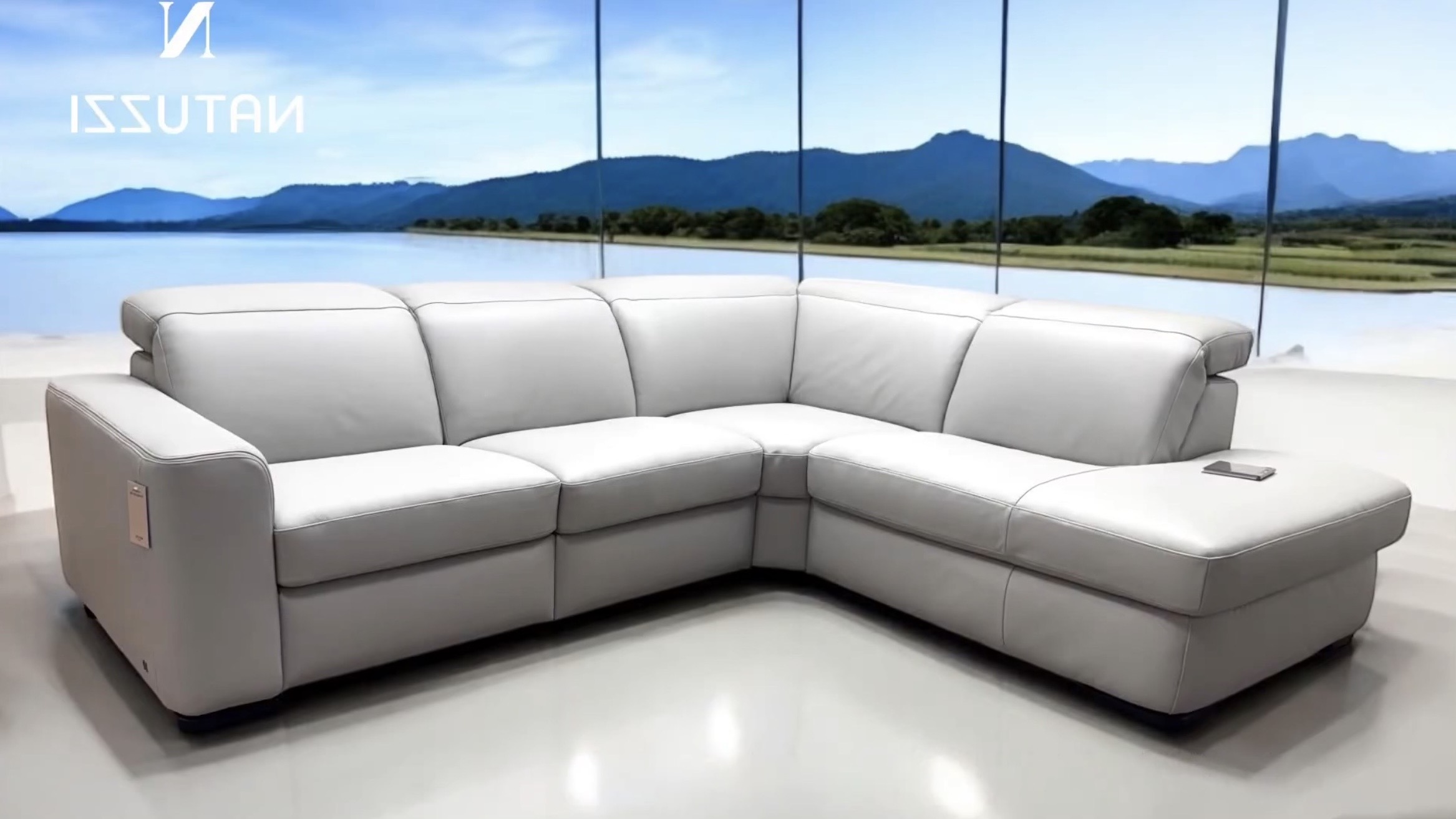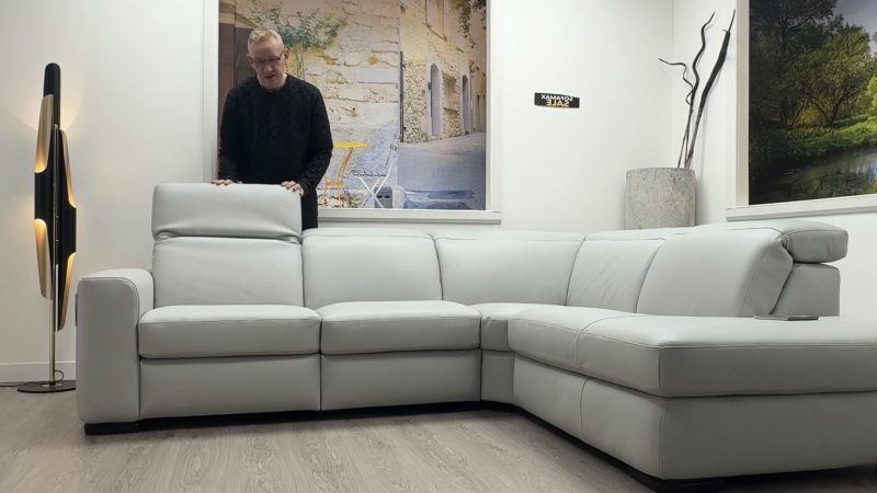 - Natuzzi Italia Diesis Grey Leather Corner Sofa
