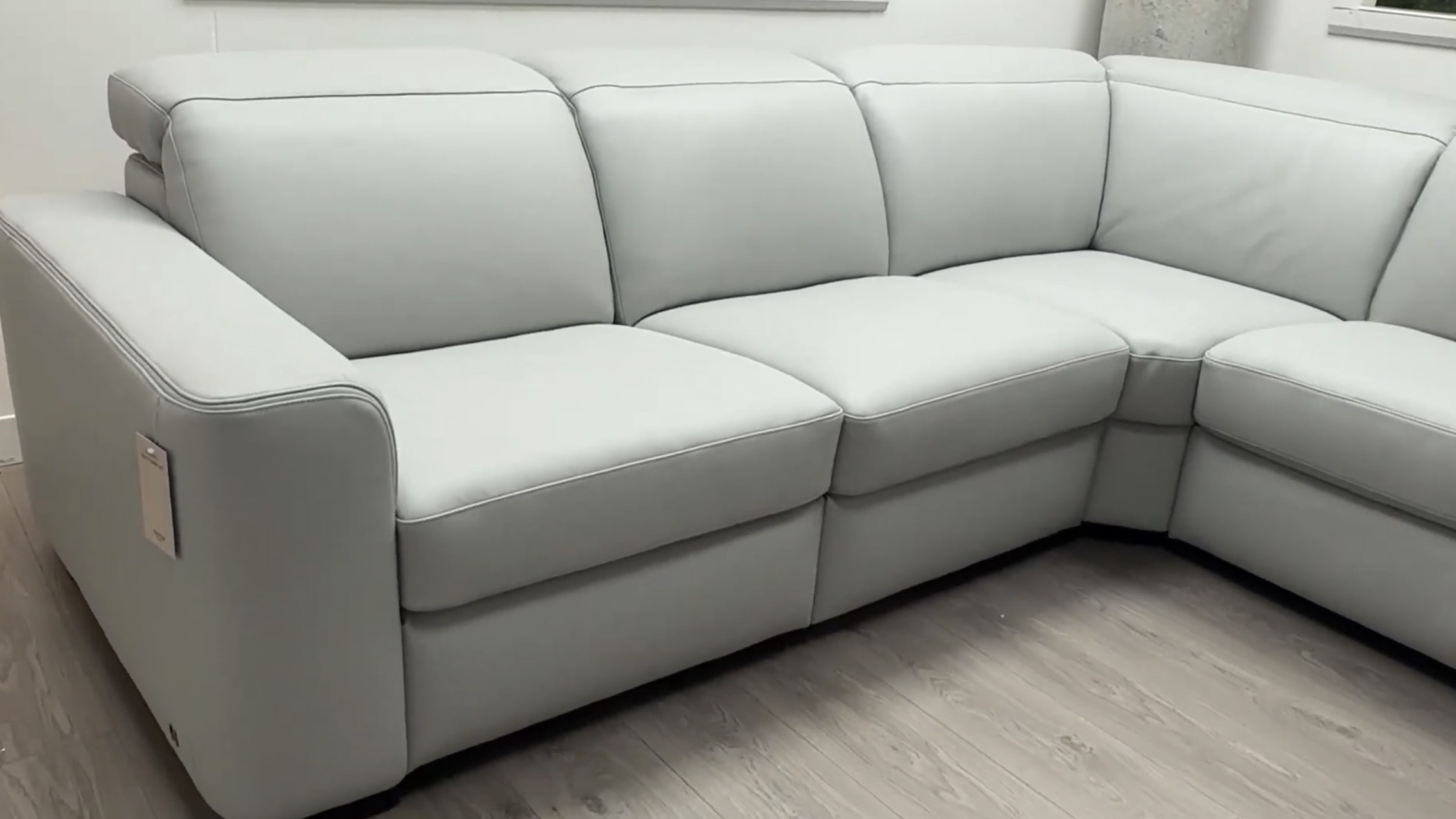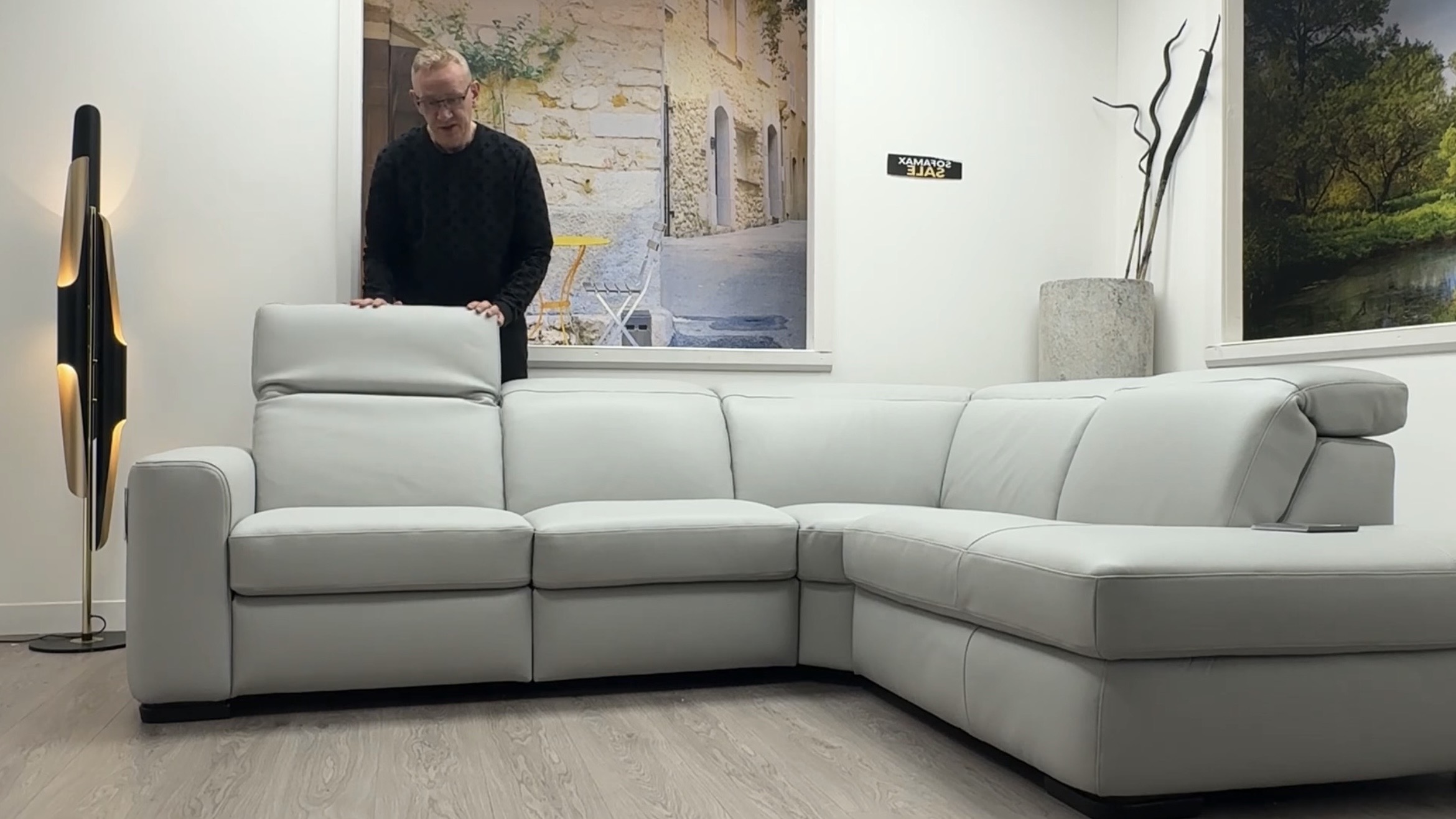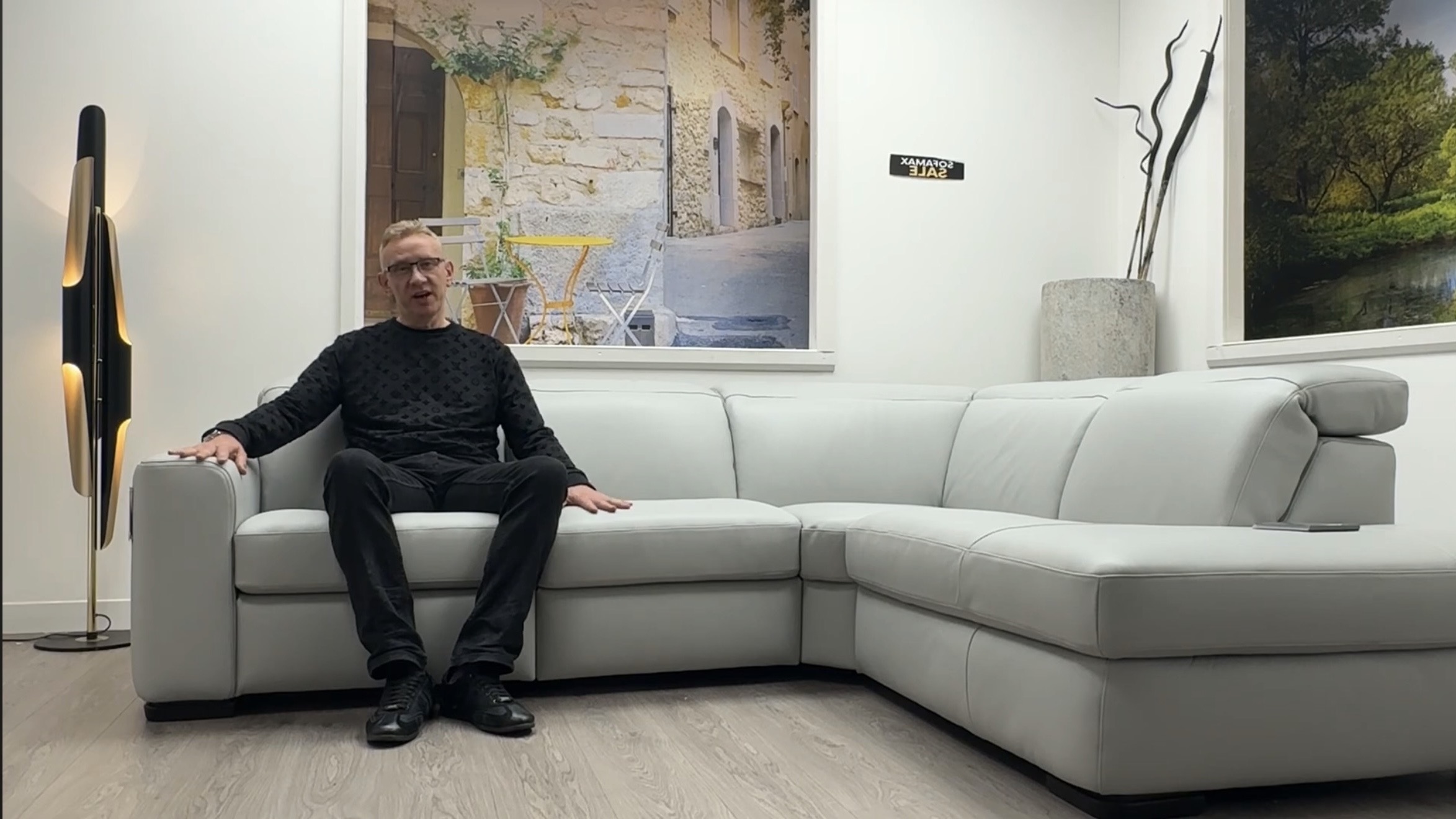 The Natuzzi Italia Diesis is a compact and beautifully finished corner sofa upholstered in Cat 25 protected leather, a thick and smooth light grey hide that feels refined and long lasting. Its 271 by 225 cm footprint makes it an easy fit in most homes while still offering generous seating.