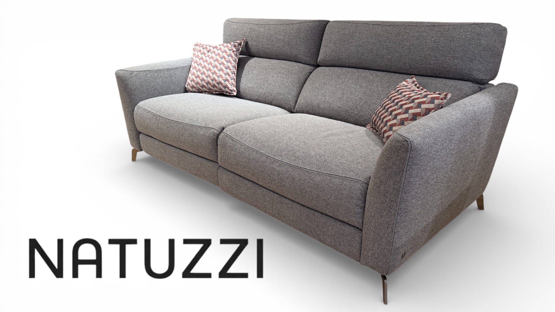 This is the Natuzzi Italia Stan three seater, model code 3035, with power recliner and power headrest. It is an ex Natuzzi Italia store display piece, now available as a clearance Natuzzi Outlet style deal through SofaMax.