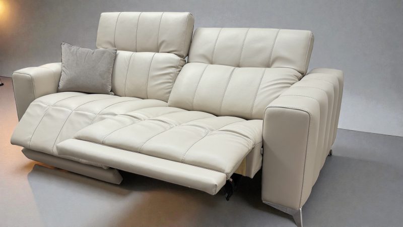 The three seater is designed for modern living, combining sleek open base designer styling with comfort led engineering. Power up headrests let you raise support exactly where you want it, ideal for relaxed evenings, reading, or watching TV. When it is time to put your feet up, the glide forward power recliner smoothly extends the footrest and brings you into a deeper lounging position without compromising the sofa’s clean designer lines.