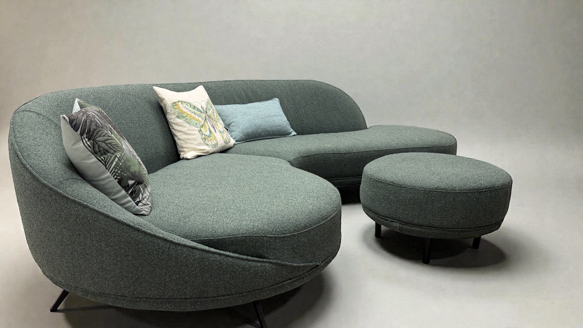 - As pictured, Venus can be complemented with a matching feature chair and a round ottoman that works brilliantly as a footstool or casual coffee table, creating a complete lounge set with a coordinated designer finish.