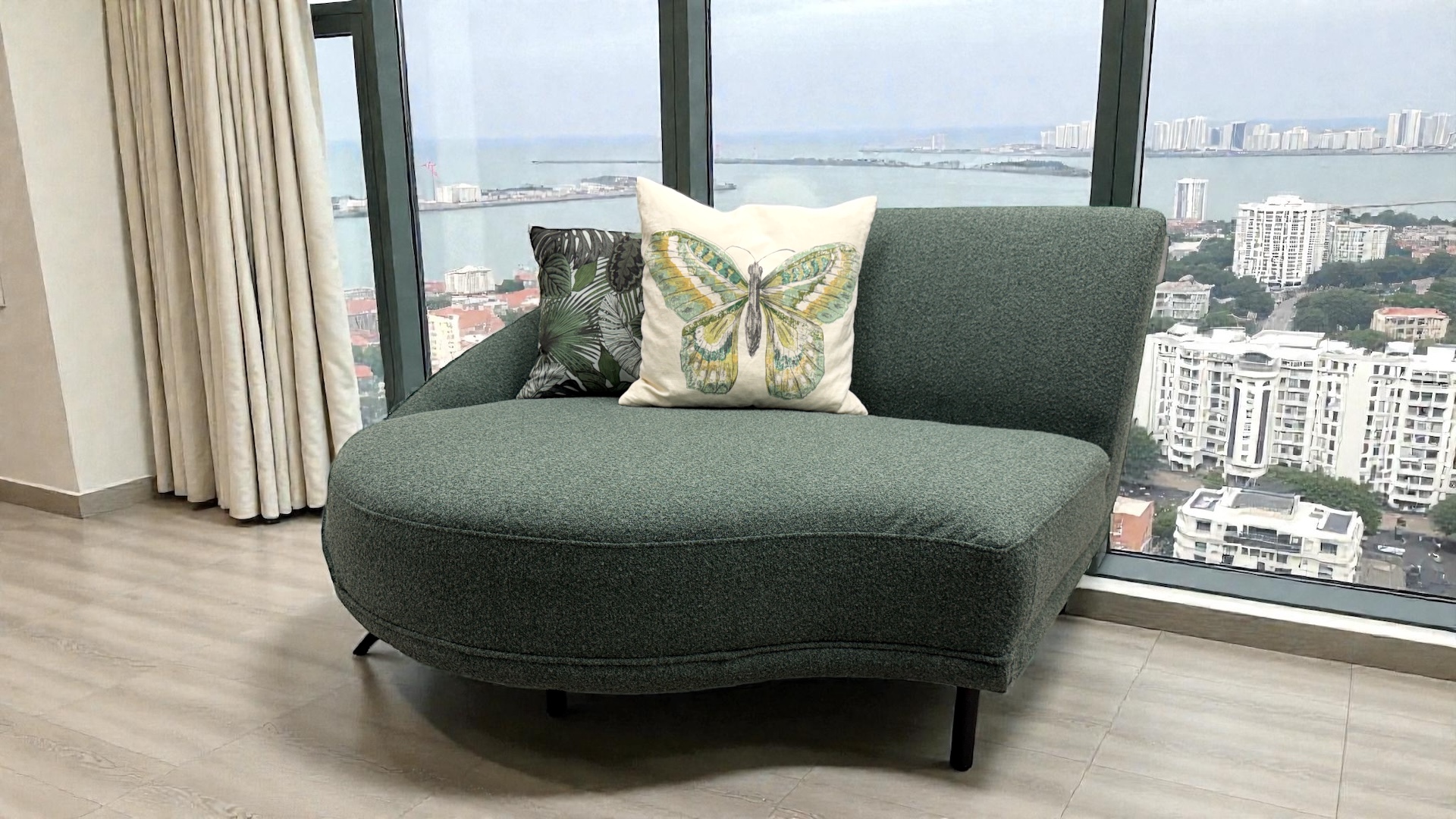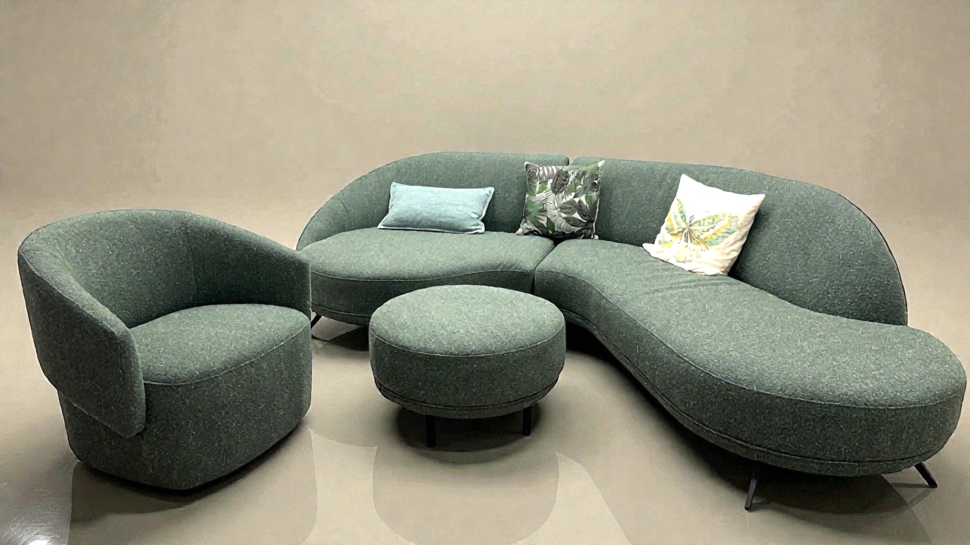 Venus Green Curved Designer Corner Suite Chaise