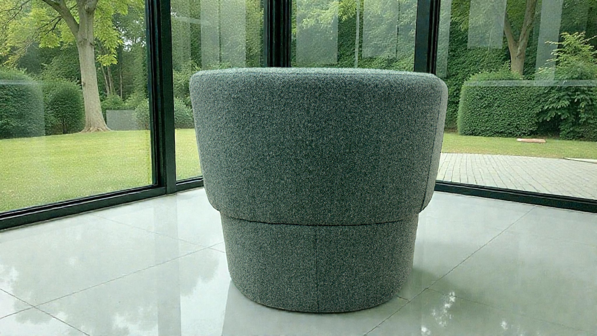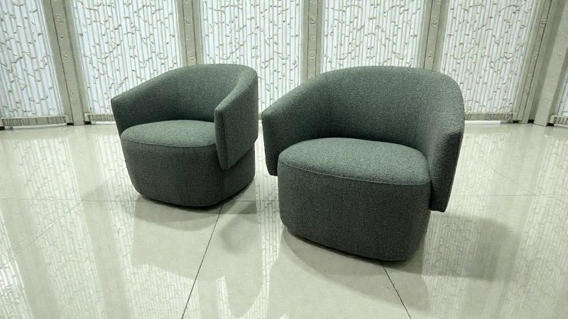 - Textured woven fabric upholstery with a premium modern feel