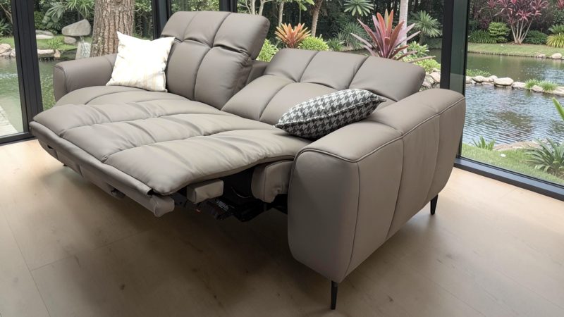 Designed by Simon Lichtenstein the Marinello combines premium reclining comfort with a modern open base look. The raised base and clean lines give it a lighter, more European feel than a traditional bulky recliner sofa.